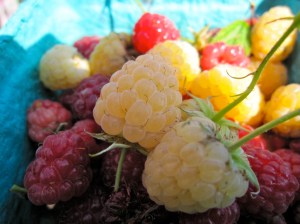 The share will consist of 4 quarts of blueberries one week, alternated with 4 pints of raspberries or blackberries. Of course, the farmer will be picking the fruit ripe so the weather and farm conditions will actually determine what comes in.