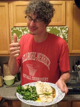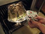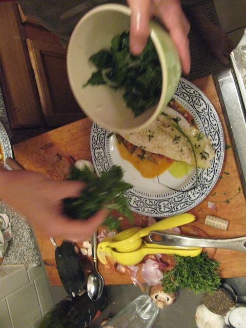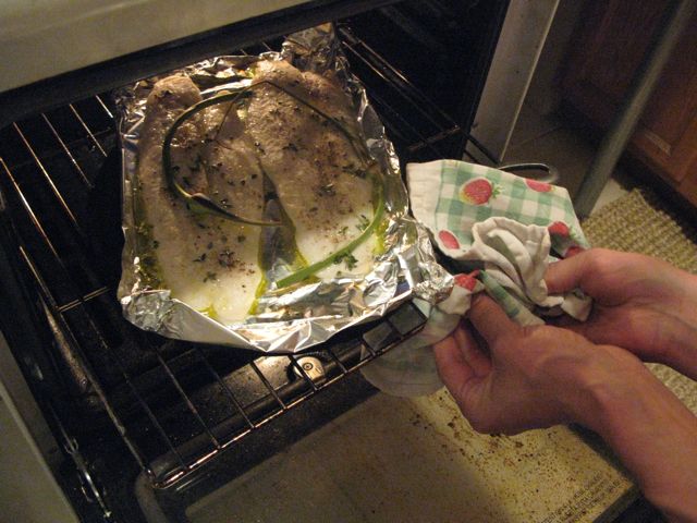 Put the fish under the broiler. It is very important to carefully keep one eye tuned to what’s happening in the oven as it will cook rather quickly. About 6 minutes if that. Overcooked fish is terrible and you will know when the fish is ready if it flakes under the tines of a fork.
