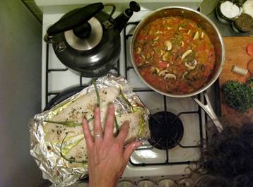 We are super excited to be the first contestants to contribute our blog-like diary entries for the first week of vegetable distribution. I know everyone must be as thrilled as we are that the season has begun. Lon is the master chef that has improvised these fantastic meals using the first week’s vegetables and herbs. We hope you are inspired to make these meals for yourself because as the professional taste tester in the house, they are deslish!! XOXOXO Suz + Lon McCaffrey