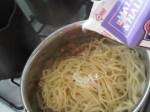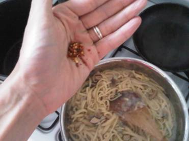 Cook about 1 minute to let the sauce settle into the pasta and add salt, pepper and a bit of red pepper and serve it up!