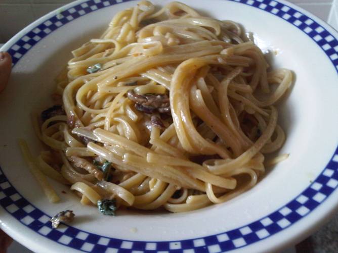 - 1/2 package of Lingini pasta cooked al dente, lightly oiled and set aside