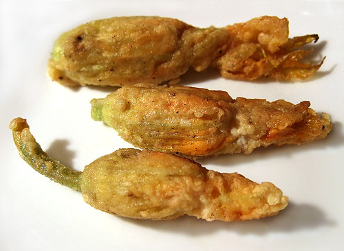 I was at my Italian-American grandmother’s on Thursday and brought the zucchini blossoms that we were treated to from MimoMex. Grandma hadn’t had them since her mother had last made them, almost 20 years ago. Her mother came from northern Italy, up near Milano, where this sort of thing is an early summer treat.