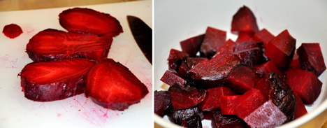 Roast beets in 350-degree oven until tender about 2 hours.