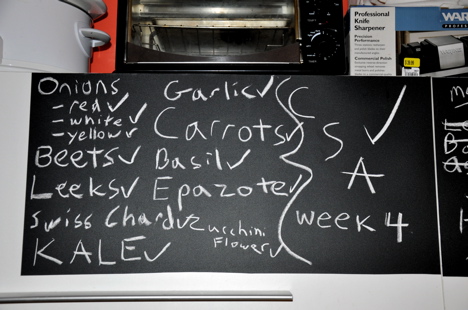 Thanks to the long weekend, we had Monday off from work, and figured we could knock out our distribution shift. After setting up, we manned the egg and berry table for the evening. For those of you who got the berry and egg shares, we can admit to severe jealousy, as after sitting with the multi-colored eggs and gorgeous buckets of berries, our vegetable share seemed insufficient. That said, what a vegetable bounty it was: