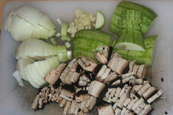 This is one of my go to meals when I have various veggies left and I’m not up for being adventurous. Basically, you can make it with anything – today I chose zucchini, onion, garlic and portobello mushroom.