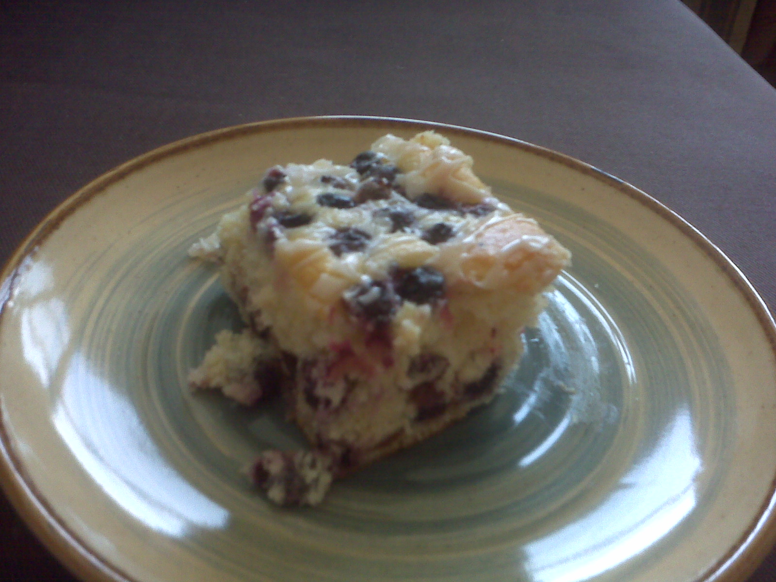 Drizzle warm coffee cake with a mixture of 1c powdered sugar, 1 tsp grated lemon peel and 2 tsp lemon juice (I warm it slightly by placing it on top of the stove and let the heat of the oven soften the glaze).