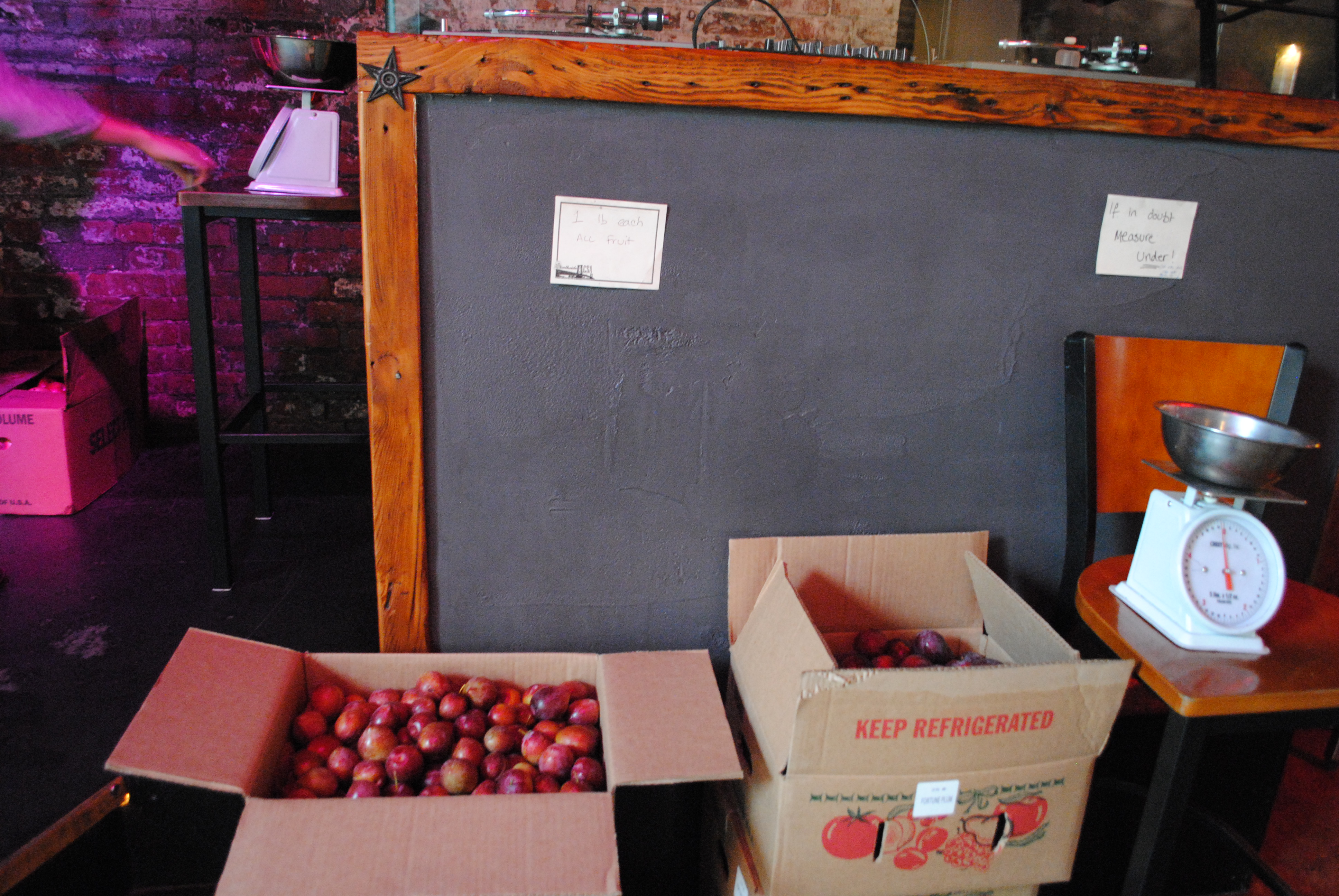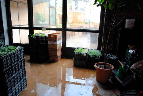 We hurried the precious berries and eggs inside. Then dashed out for the fruit which was packed in perishable cardboard boxes. It started to rain harder and we thought, perhaps it’s just the one hit of rain, it’ll stop in a few mins. NOPE. So the remaining few mins of set up was spent running like mad through the by now drenching rain, with a few extra early bird members (THANK YOU THANK YOU!), and chucking the crates back inside.