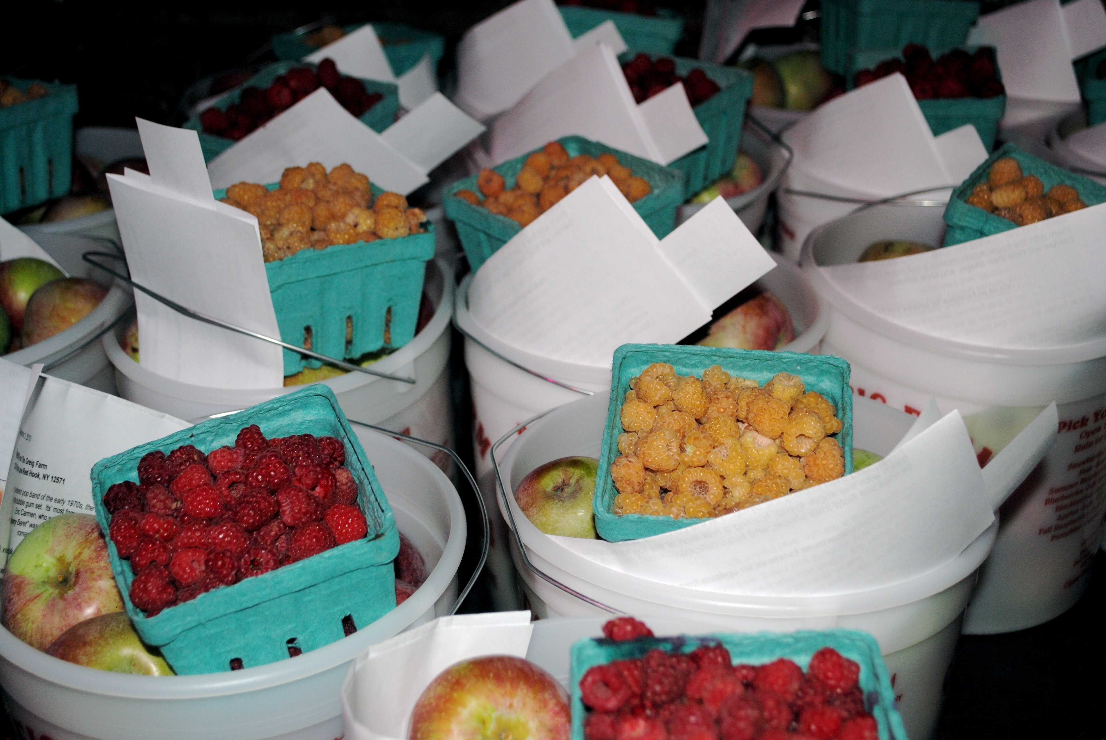 - Pint+ of raspberries; choice of red or yellow & a bucket of Apples