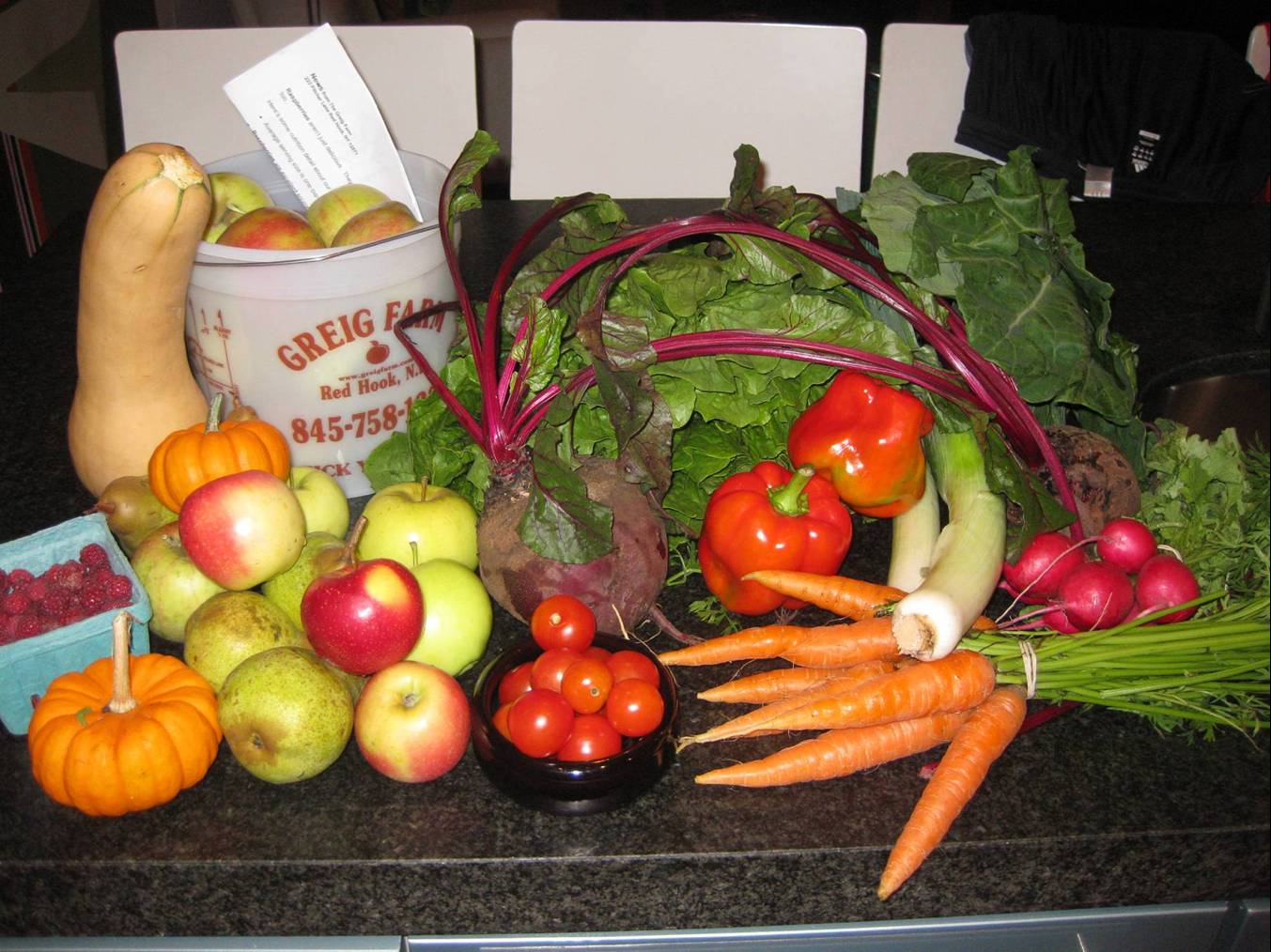 Throughout the week at work I ate 2 pieces of fruit per day, for breakfast and at 4pm at my desk, so that makes quite a dent in the apple and pear bounty, and then I also get to count on Evan to help out with consuming the fruit!
