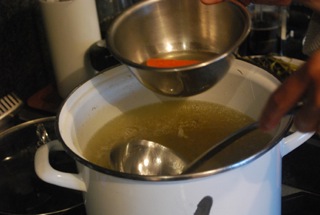 We have been using the majority of our fruits and vegetables to feed our 10-month-old daughter. Her meals generally follow a standard formula – cook a large batch of something, puree it, freeze leftovers for future meals, thaw iced meal in pot over low heat as needed. We documented the process this past week while cooking chicken soup and applesauce, which are two foods she seems to love.