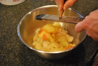 Bake cored apples at 350 degrees for about 45 minutes or until you smell them. When done, remove skin, season with cinnamon, and puree.