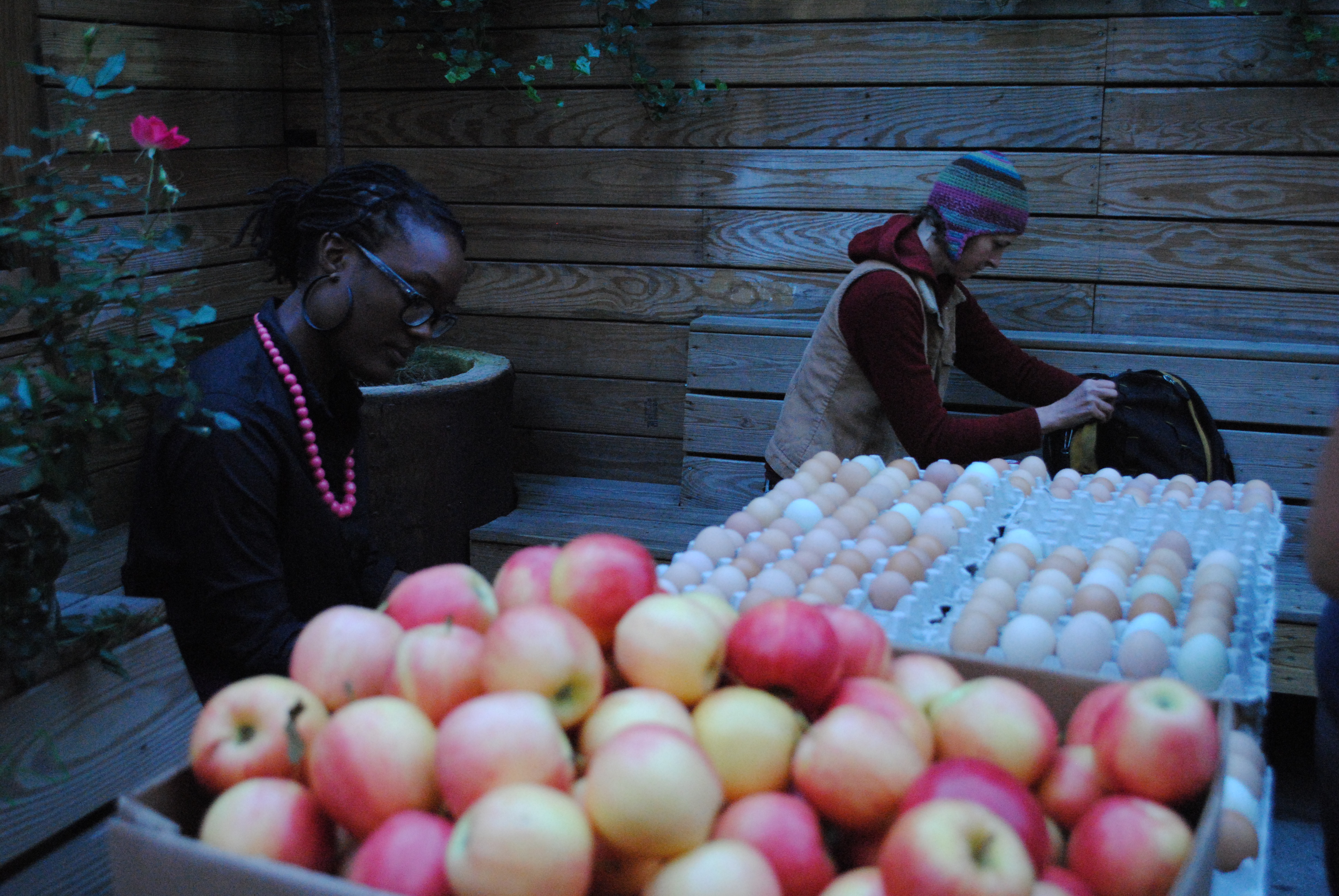 It started out as such a gorgeous evening. Nice temp, bright blue dusk, and piles of freshly harvested vegetables.
