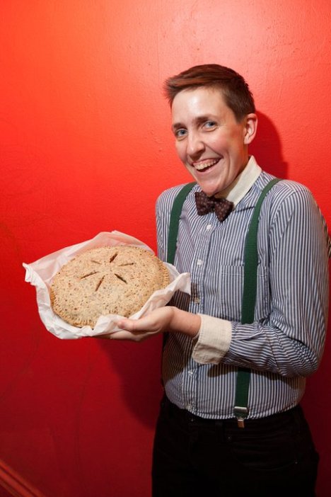 Over 40 pies were entered in the competition and subsequently devoured by a very happy mob. Fellow Southside CSA-ers Emmett Moeller and Gina Kathleen took home the prizes. Emmett scored the “Most Delicious” prize for a hazelnut-crusted brussel sprout & spinach pie. Gina earned the “Failure Pie” award for her cake! “Most Beautiful” went to Cy Admunson & Caitlyn Bogard’s Key Lime Pie & Shannon Camperson earned the “Most Inventive” award for a Chai Custard Pie. Treehaus wants to thank everyone who came out and hopes everyone else will join in the fun next year!
