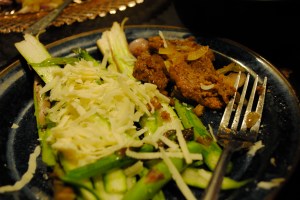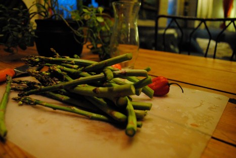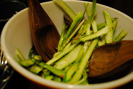 and simple fruit dressings (blood oranges from mom in Cali were divinely paired with asparagus). We have also eaten it like the vegans, cherishing the fresh taste of Spring. Quickly prepped, a raw asparagus salad is a simple way to eat up your asparagus. Apparently another way to eat your asparagus raw, is as a pesto. [Although some recipes out there seem to call for the asparagus to be blanched] I have been dubious about “other” pestos after a disaster with purslane (blargh!) but the comments and pics about asparagus pestos seem to sound and look yummy.