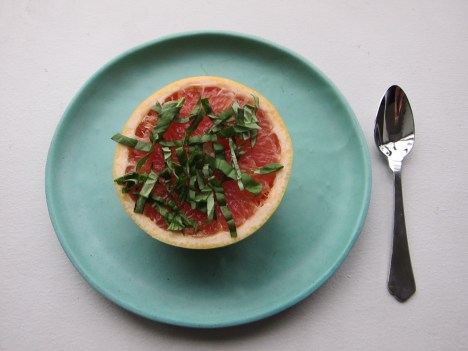 Unexpected use of basil! It is delicious in thin strips on pink grapefruit. (Stole idea from the Breslin at the Ace hotel but they put lots of sugar on it) Used: Basil