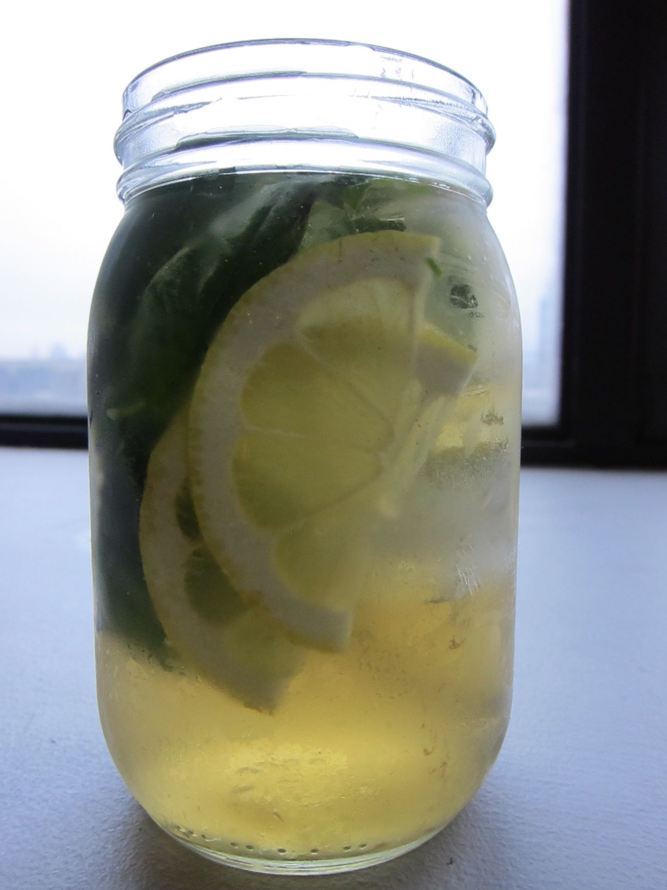 Deluxe Iced Tea- you can really make any kind of iced tea deluxe by adding basil and lemon to it. I ended up using Pukka nettle, fennel and peppermint tea and it was great. For stronger teas, I would add a bit of agave too. Used: Basil
