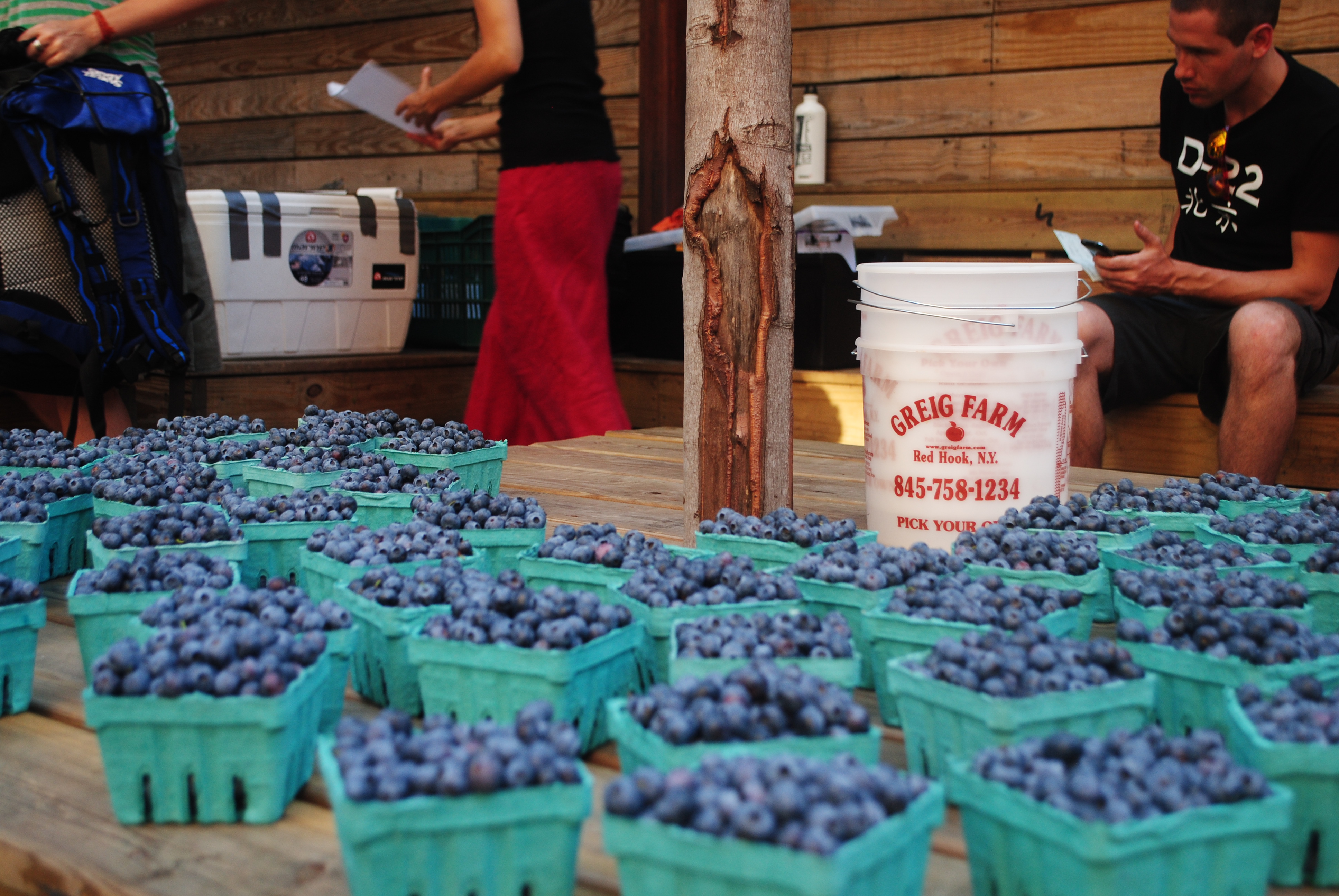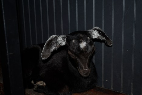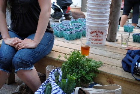 Check out the booty from MimoMex farm! It was another beautiful evening in the backyard of the Woods, complete with the magical start of blueberry season and a visit from our fave baby goat!