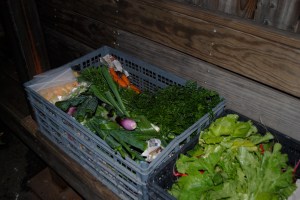 At the end of the night, we gleaned off produce to make some frittata and green salad for the Green point Soup Kitchen and had 3 crates full of produce for the Southside Mission Food Pantry