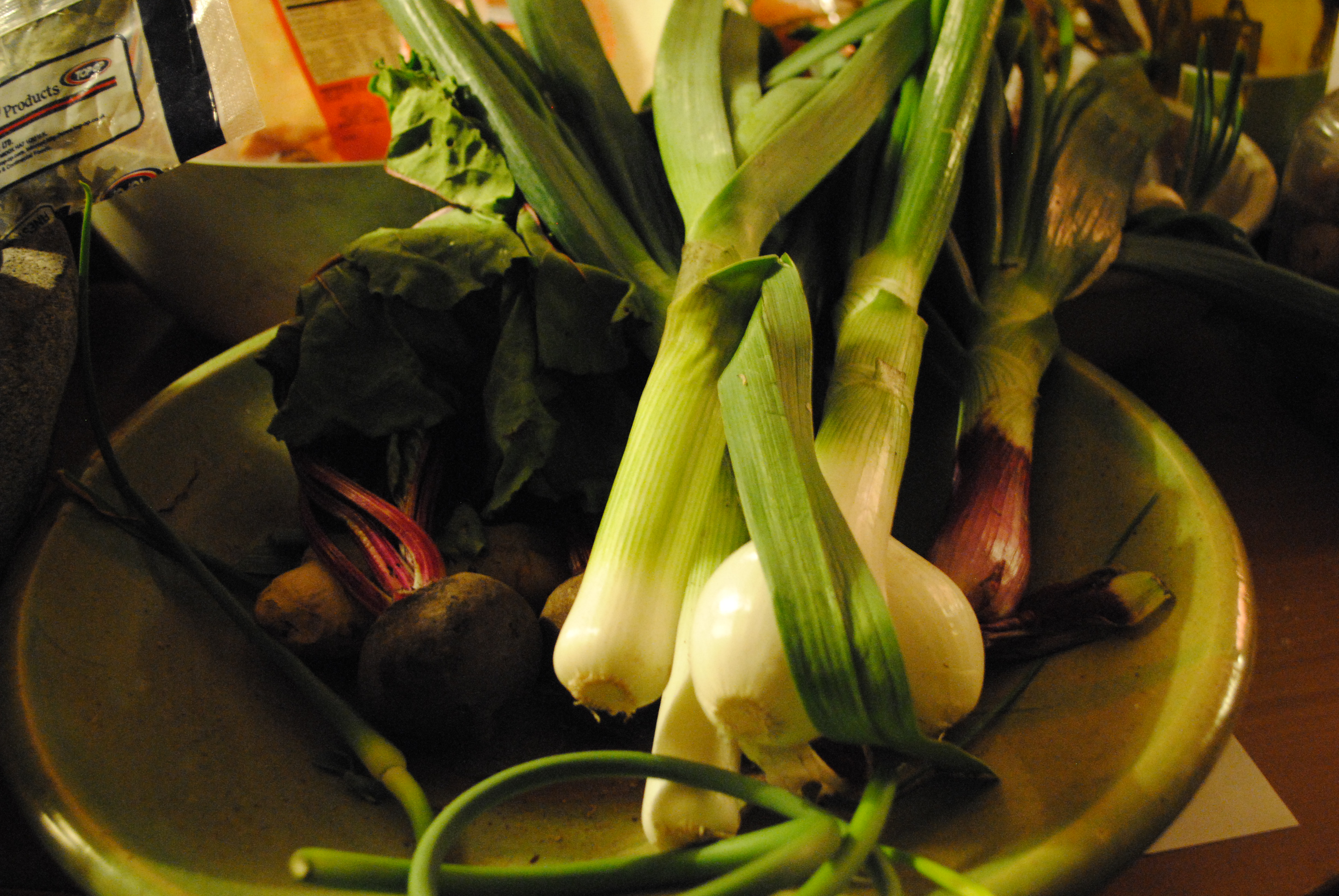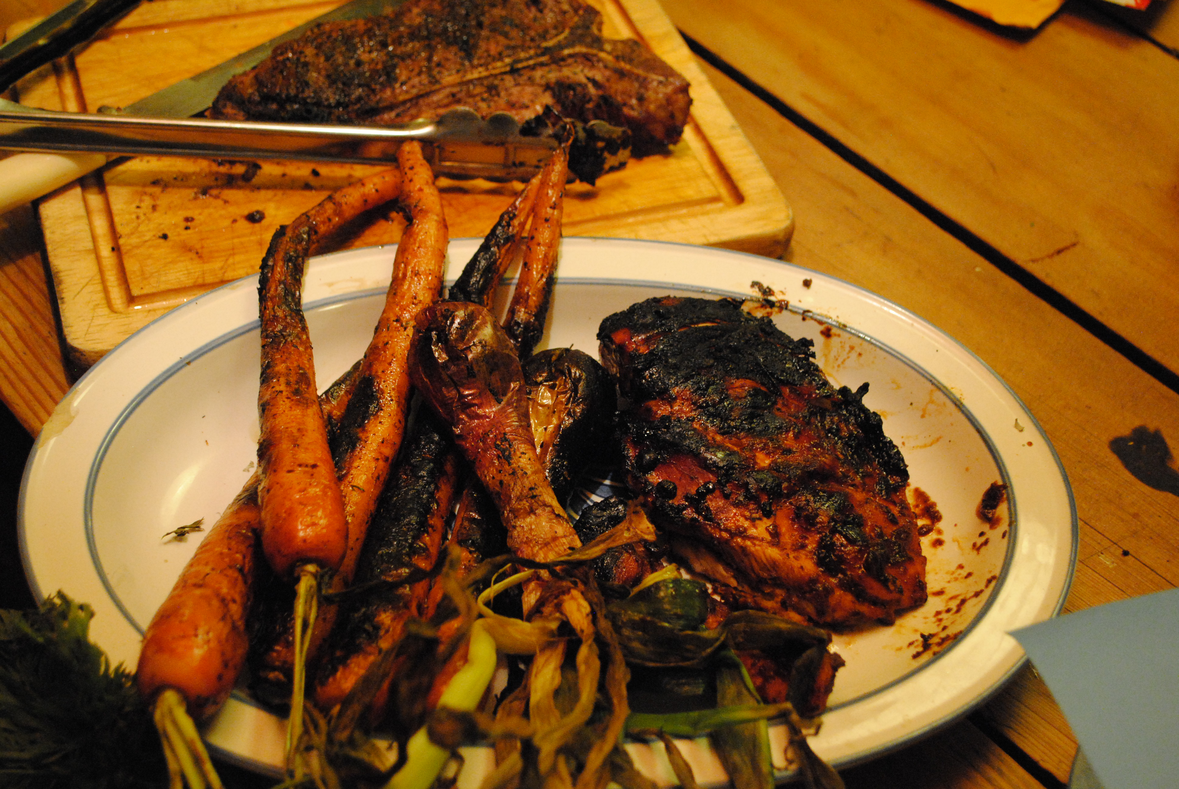 We have a weekly bbq at our house with other friends who are members of CSA. We have found it helps motivate us to cook cook cook with our CSA produce. It is also great inspiration for us because our friends are pretty imaginative cooks. Yolim likes to grill up whole bunches of carrots and smaller onions to go along with the divine porterhouse steak that came in the meat share. You haven’t tasted anything until you have had a grilled MimoMex carrot!