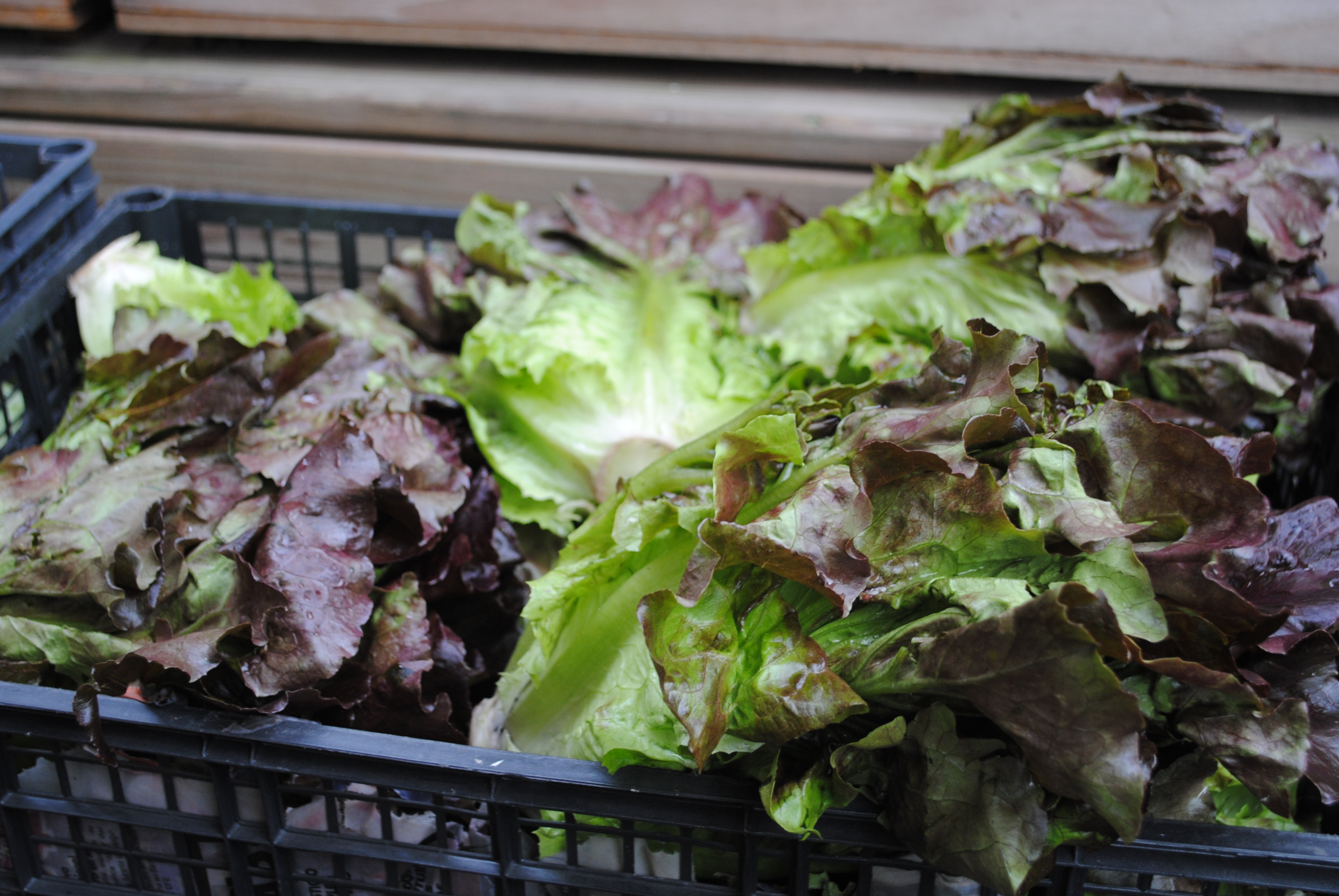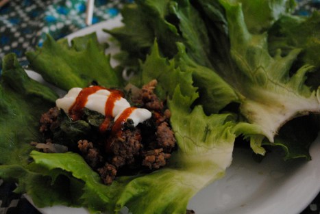 beef from the meat share and a ton of basil from the garden and cilantro from the CSA share. We had some homemade pesto, Sriracha, and crema azteca on hand for condiments. Such a delicious way to use up some of the gorgeous lettuce leaf from MimoMex farm.