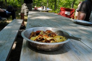 I know many of you CSAer’s love to camp and if you love the wonderful bounty of delicious vegetables that is the Southside CSA, chances are you aren’t going to be happy eating hot dogs and ramen noodles for an entire weekend (not that there’s anything wrong with that). This book is worth taking a look at to inspire some incredible campfire meals. Eight of us Southside CSAer’s (and two misfits from another csa) went to Cedar Point Campground in Long Island for Memorial Day Weekend and brought this book with us to test out some of the recipes. The verdict: pretty great, but our own recipes are even better.