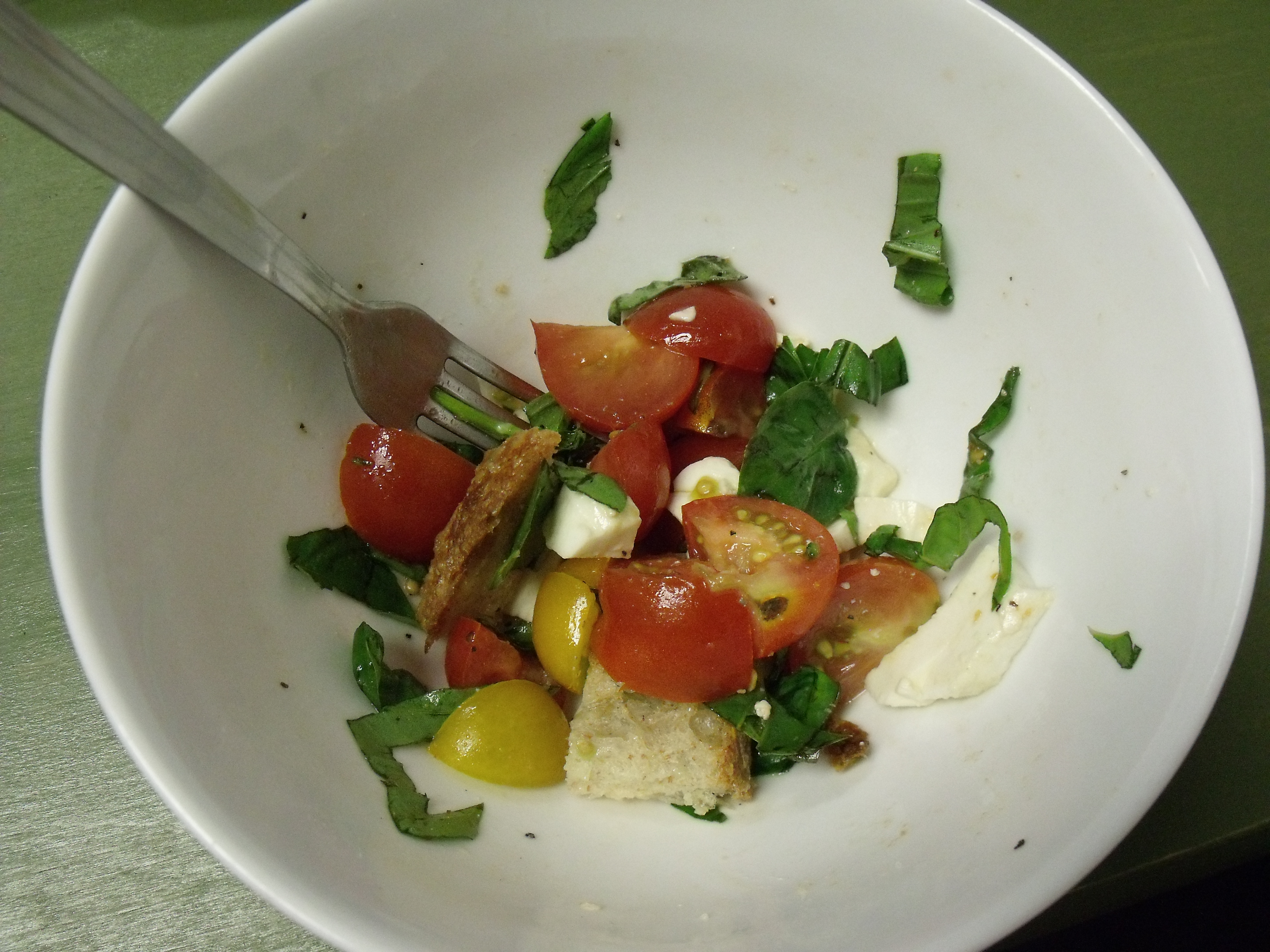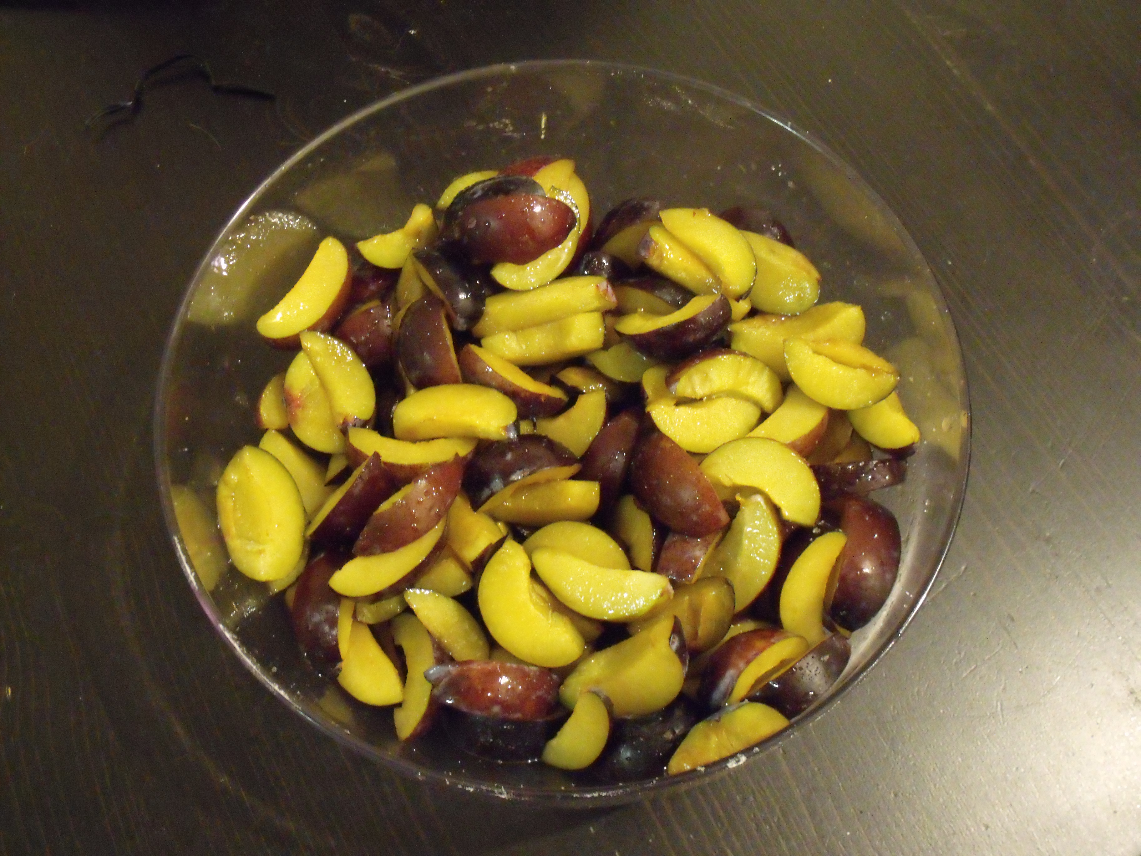 For lunch the next day: A tomato bread salad, using tomatoes, scallions, and basil. I sliced up tomatoes (supplemented with a couple sungolds from our back yard!), drizzled them with a smidge of balsamic, tossed in some Hot Bread Kitchen bread (check it out, these are life-changing loaves), and topped with scallions. I was so excited to eat this salad, I almost didn’t get a picture of it! That night we had dessert for dinner because Wilford Brimley doesn’t scare us. Our vanilla spiked plum galette used almost all the plums. We sliced the fruit and then tossed it with a mixture of vanilla, cornstarch, lemon juice, sugar and a pinch of sea salt.