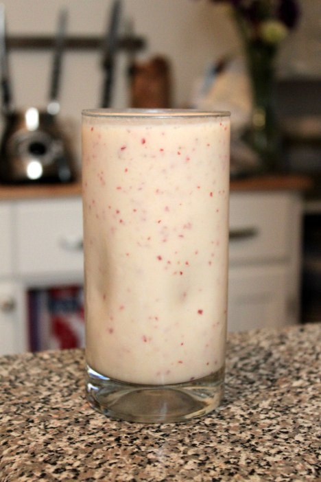 Ice (as desired)Combine all of the ingredients in a blender and blend until smooth.