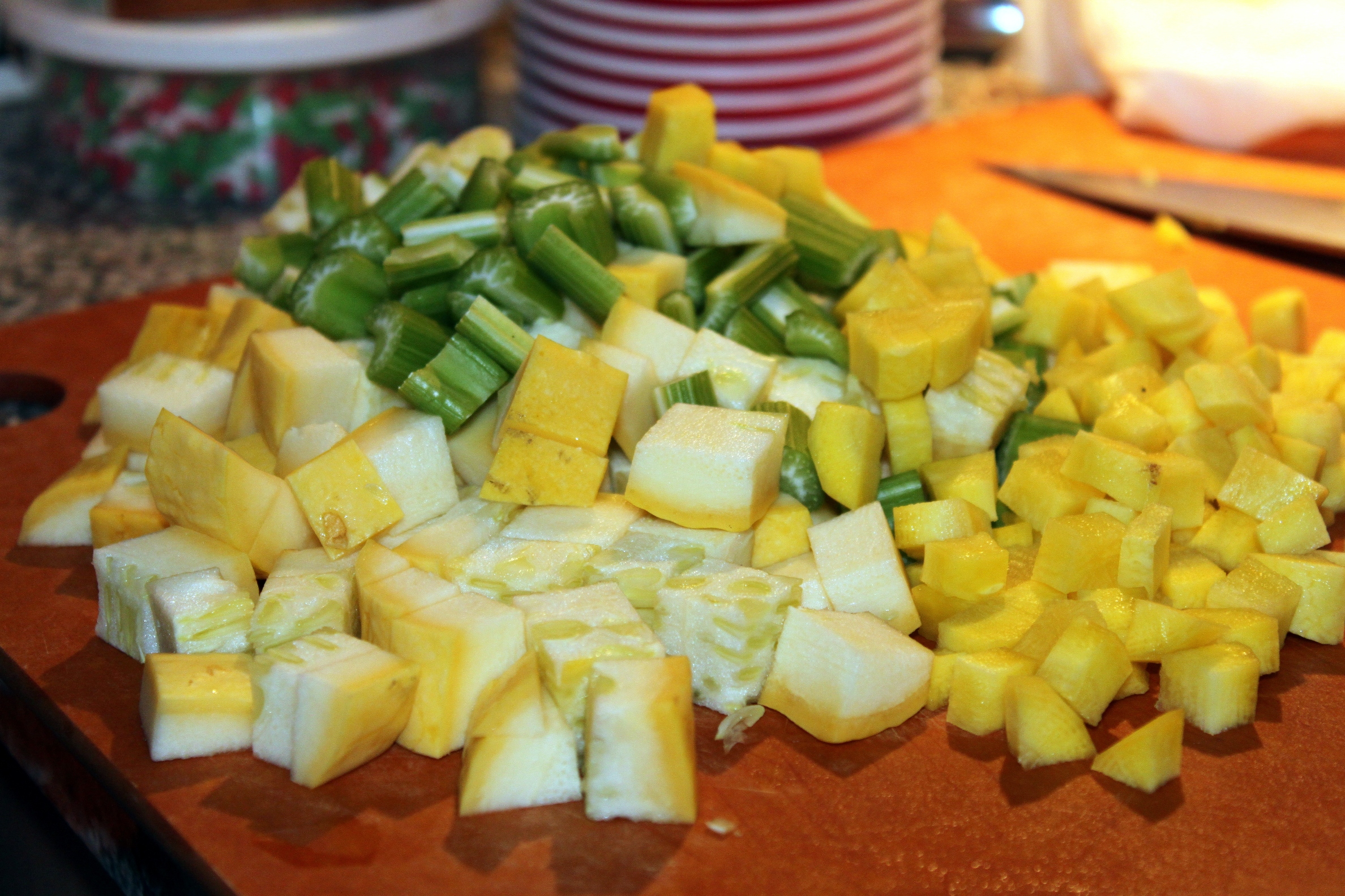 Leftover vegetables, diced (I used squash, celery, onion and carrots)