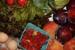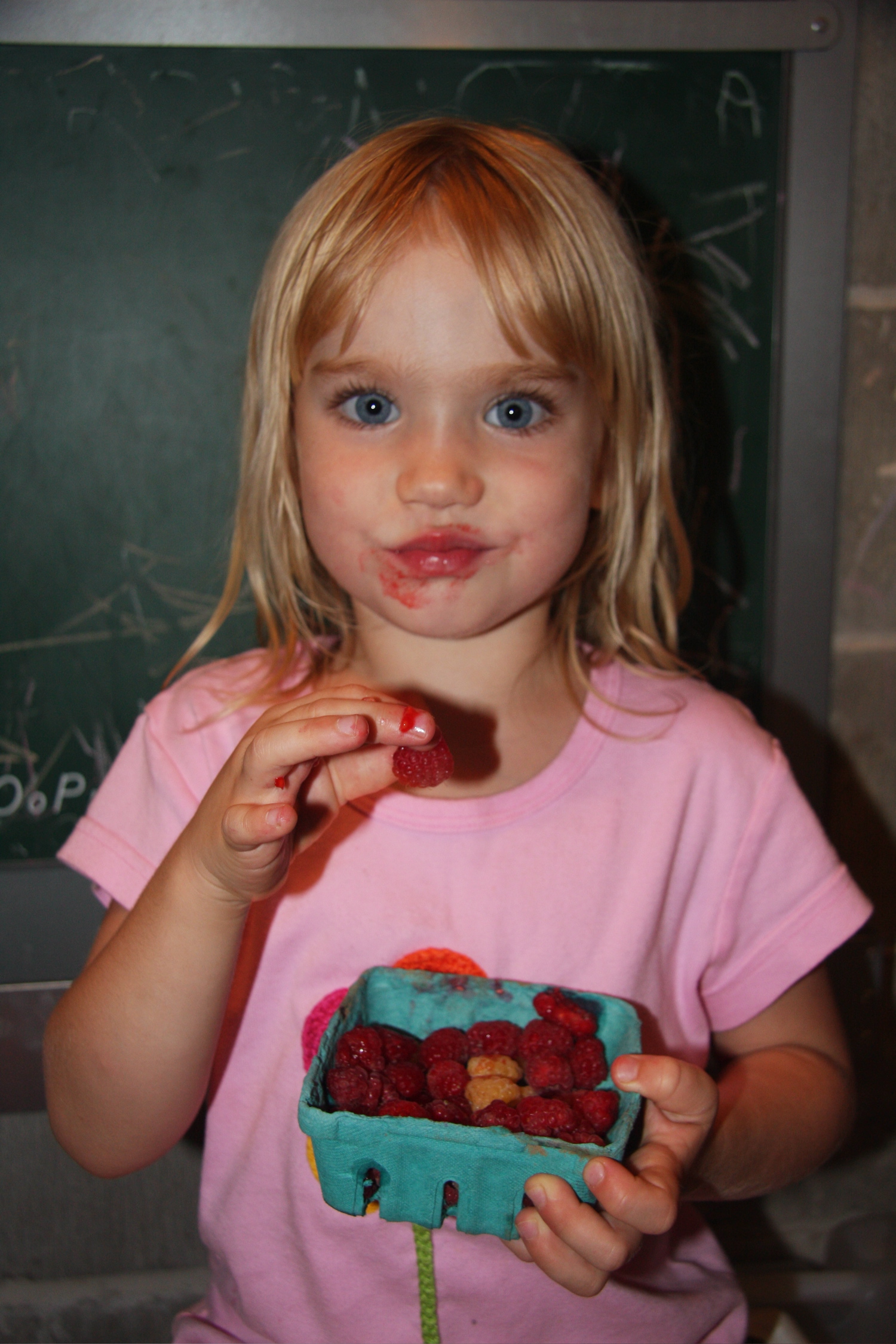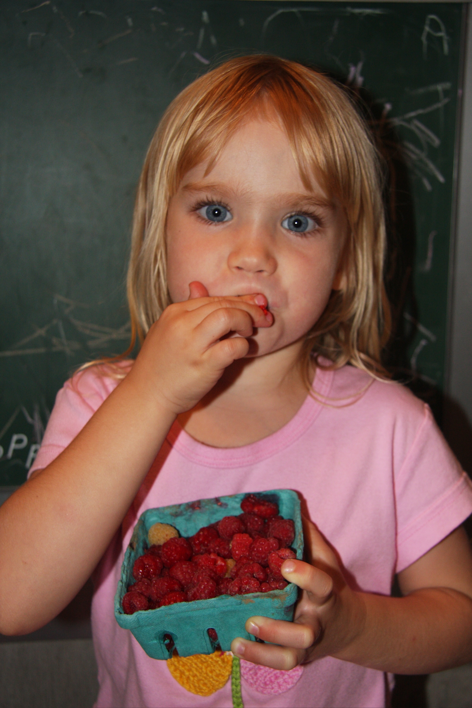 Our share family consists of two parents, and two children. Our daughter Ana is a strong-willed 4 year old, and our son Hugo is an energetic 20 month old. Together we share the Domino Deluxe. The share for this week included: potatoes, serrano peppers, jalapeño peppers, tomatillos, green and red tomatoes, celery, lettuce, cabbage, radishes, peaches, plums, raspberries, and eggs.