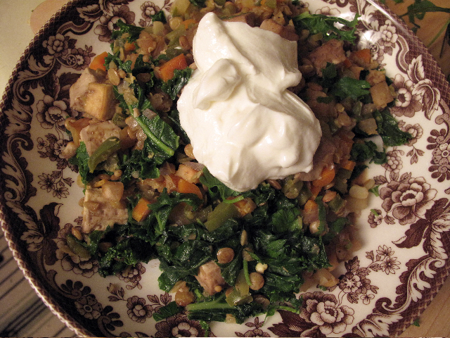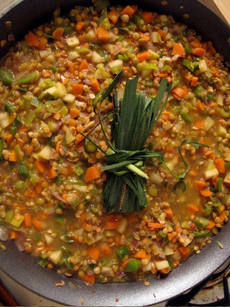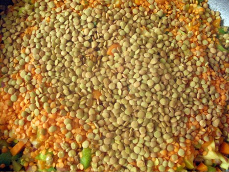 Add some lentils and water or broth – I used some homemade stock.