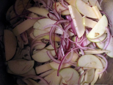 Added apples and onions, salt and pepper .