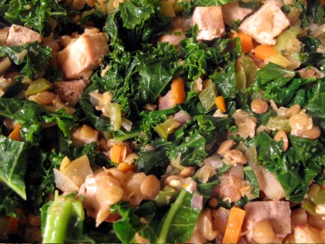 Finally – some chopped kale and the baked tofu to finish!