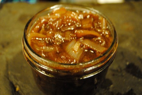 There are lots of good recipes for Red Onion Marmalade on the internet. It is a pretty basic savory jam type thing. Miss Fox made us a batch back in July for our big bbq on the 4th using a recipe from her vault of British classics. Here are a few gems i found online: