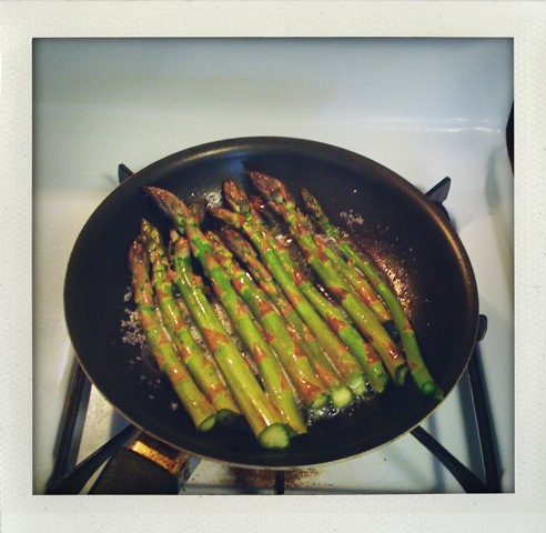 - 7 to 8 stalks asparagus, bottoms trimmed