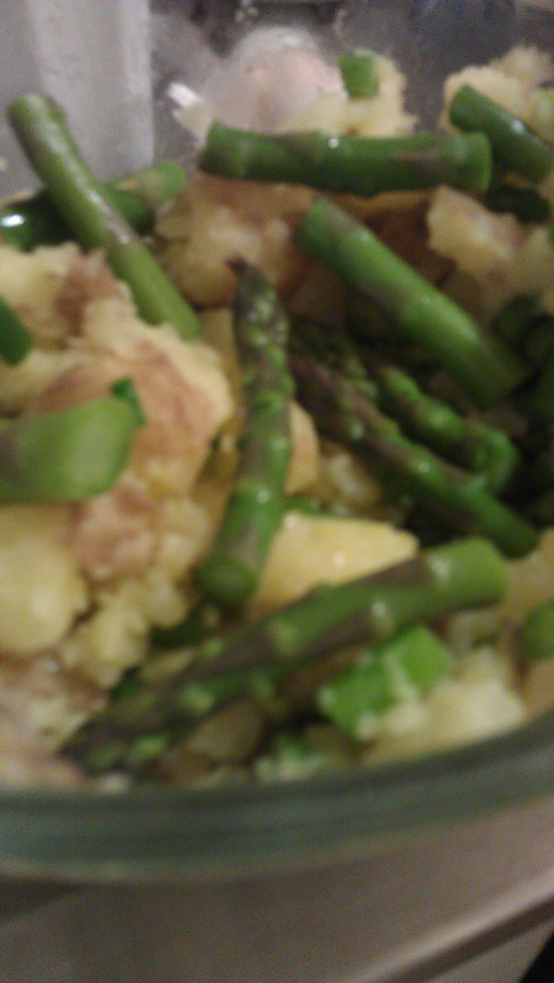 Then to finish it off we muddled in some coarsely chopped asparagus. And voila a lovely side or a nice snack for Meshak and I to take on our travels the following day.