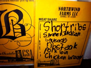 Monday night: Pick up — Bye bye, meat share! Have fun at Ryan and Rachael’s house!