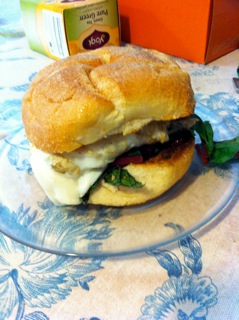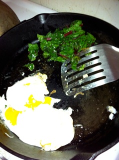 Breakfast: For some reason I was starving when I woke up, so I had a sandwich with Feather Ridge Farm eggs, mozzarella cheese, and some chard. This was the last stale roll, but the eggs were so delicious that it really didn’t matter.