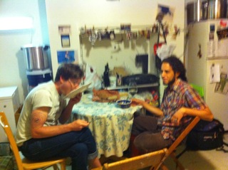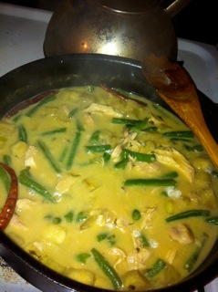 Dinner: Bruno came over and we used the rest of the chicken to make a green curry with green beans and eggplant. See how good it was?