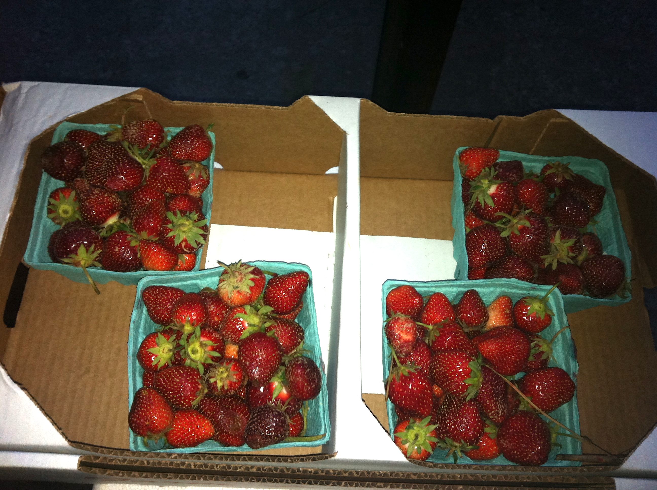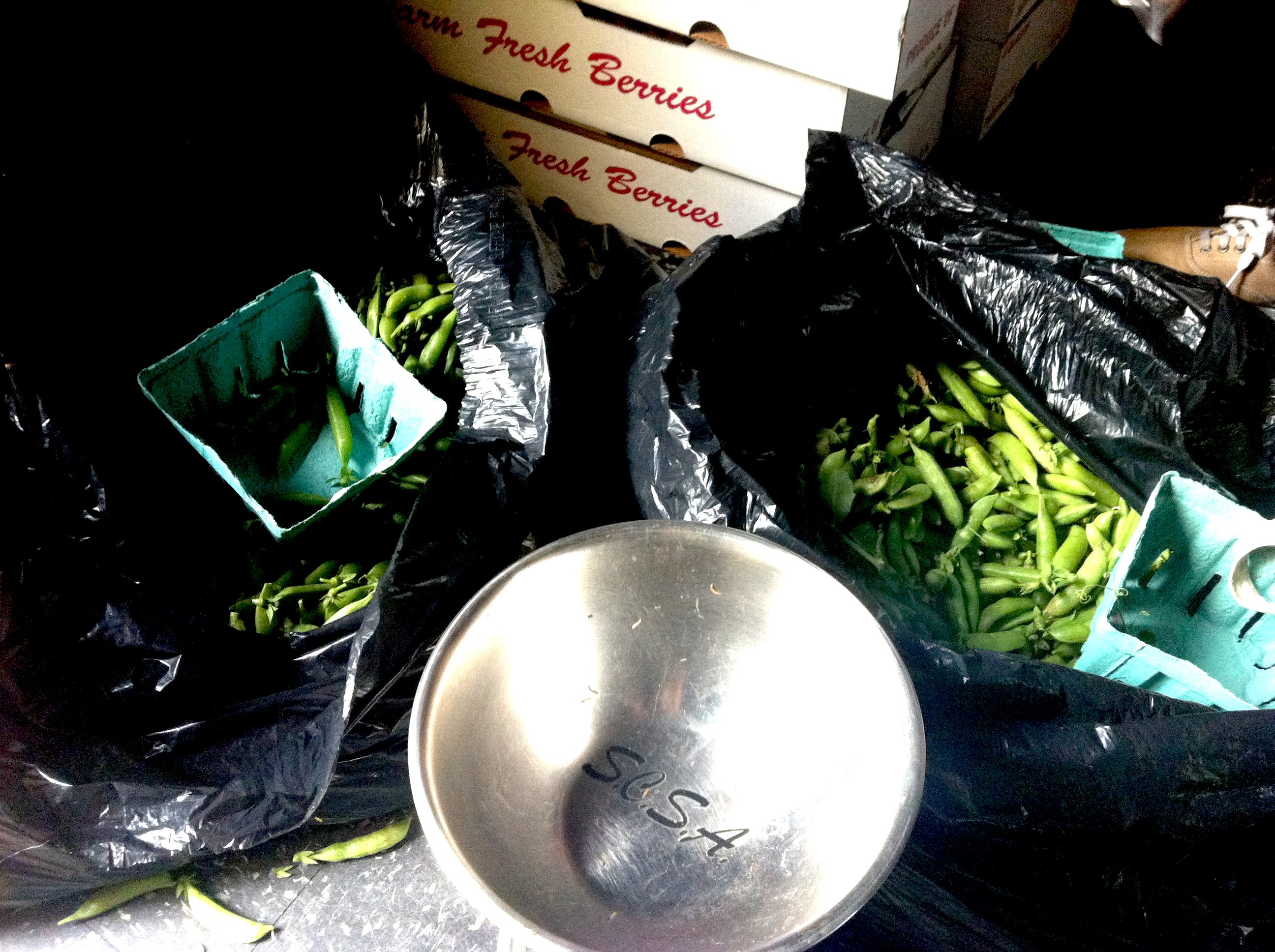 This weeks share was 1 pound of fresh green peas, 4 quarts (!) of strawberries and a dozen eggs.