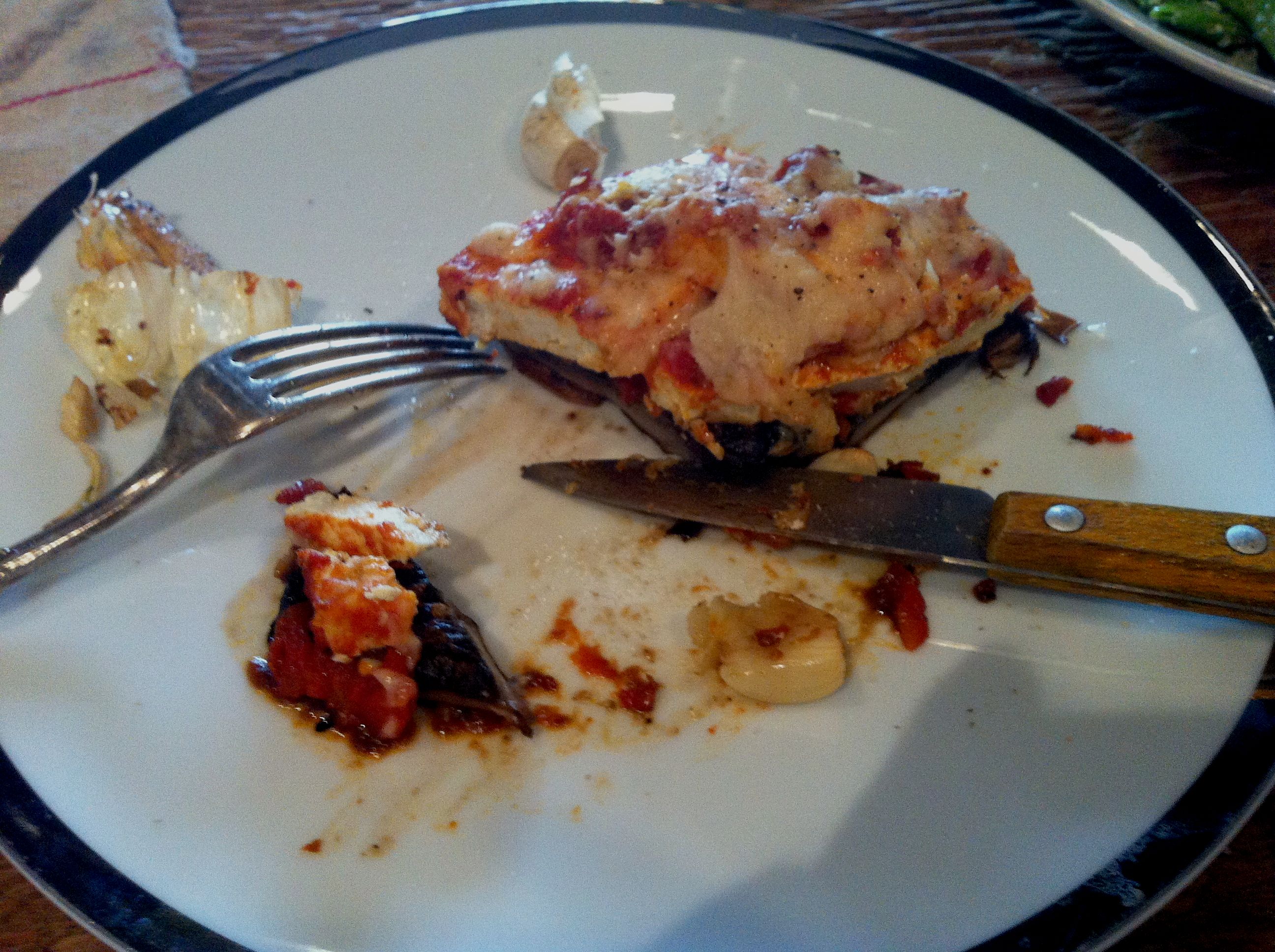 TOFU-PORTOBELLO PARMESAN WITH ROASTED GARLIC