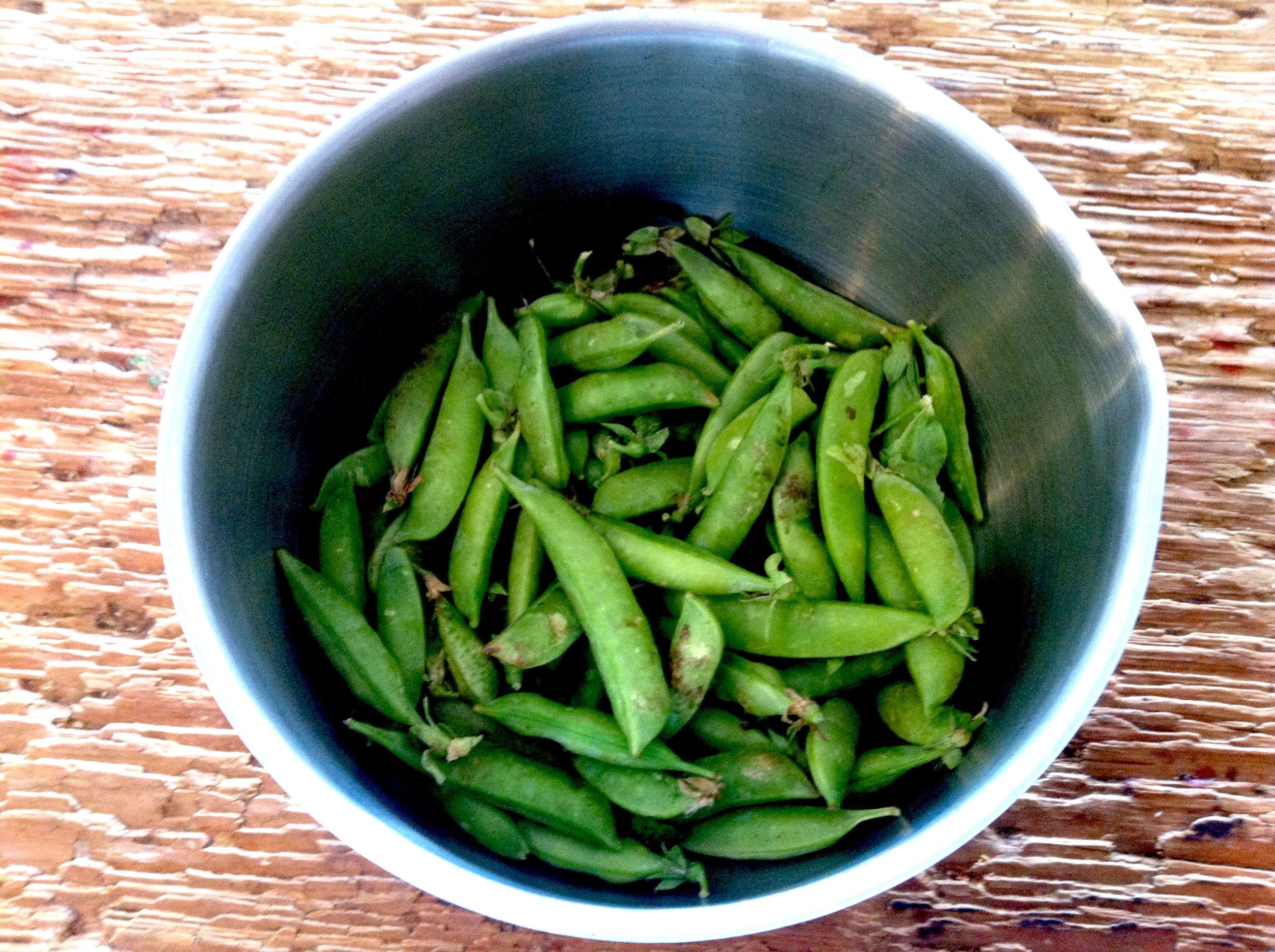 1 pound of green peas, washed with ends trimmed