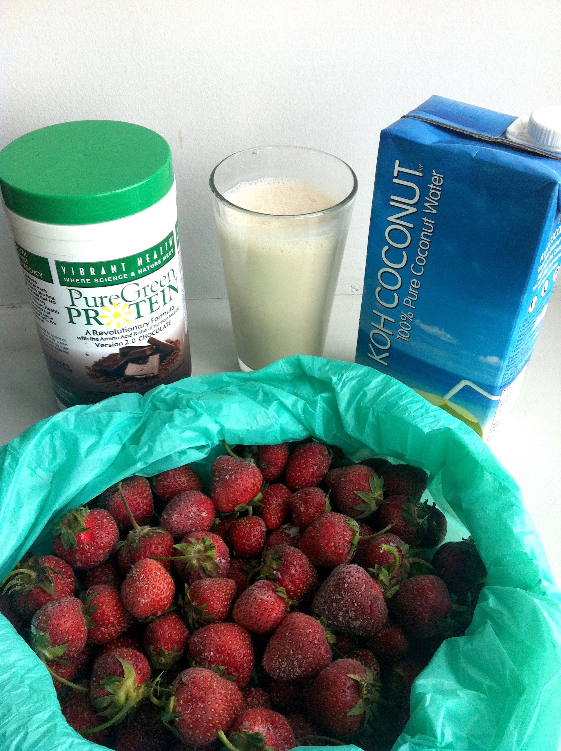 Combine all and blend, adding more or less of each ingredient to your liking. You can make so many variations of this without protein and using different nut milks and bananas, etc.