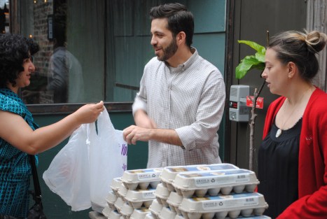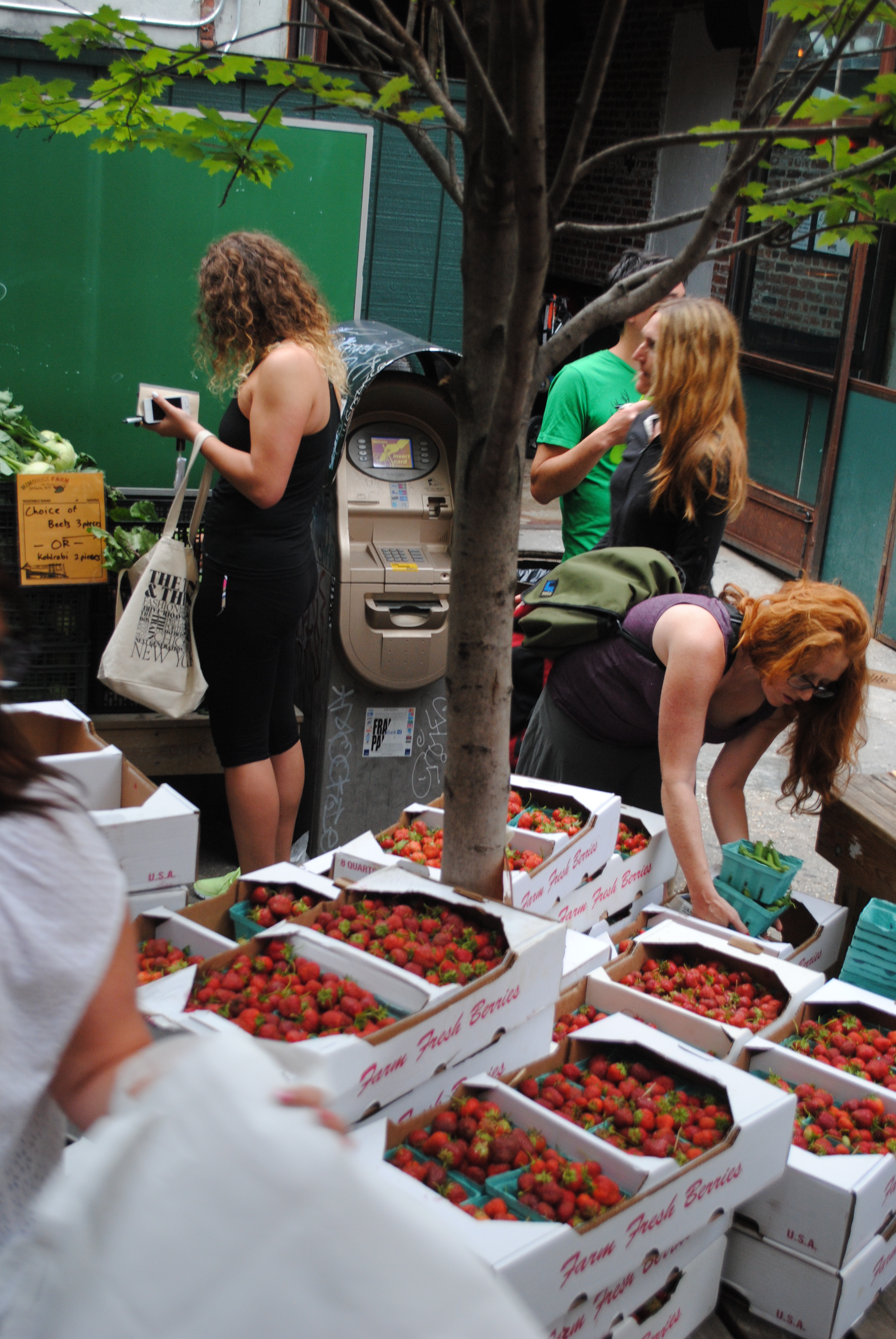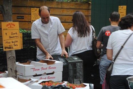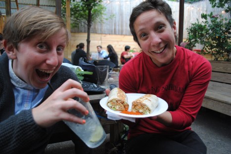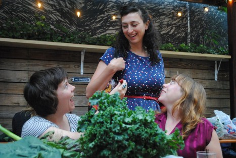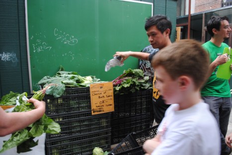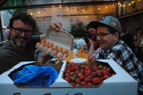 It was another gorgeous evening in the backyard at the Woods with drinks, tacos, burritos, friends, strawberries, and greens galore. Thanks to all the distribution volunteers who made our first big week go soooo smoothly. Big thanks to Norm for the 4 extra flats of strawberries for the Southside Mission. And some more thanks to those soup kitchen volunteers who gleaned off extras and made delicious salads & desserts for this week’s Greenpoint Soup Kitchen meal. Hopefully it makes you feel better to know that the weeks you miss distribution, your food is donated to feed hungry people. Sharing in our bounty is one of the great parts of the CSA community relationship. Oh yeah, and one last big thank you to the drivers who get our donations over to the Mission. Without everyone’s helping hand, it would be impossible to donate our leftovers…