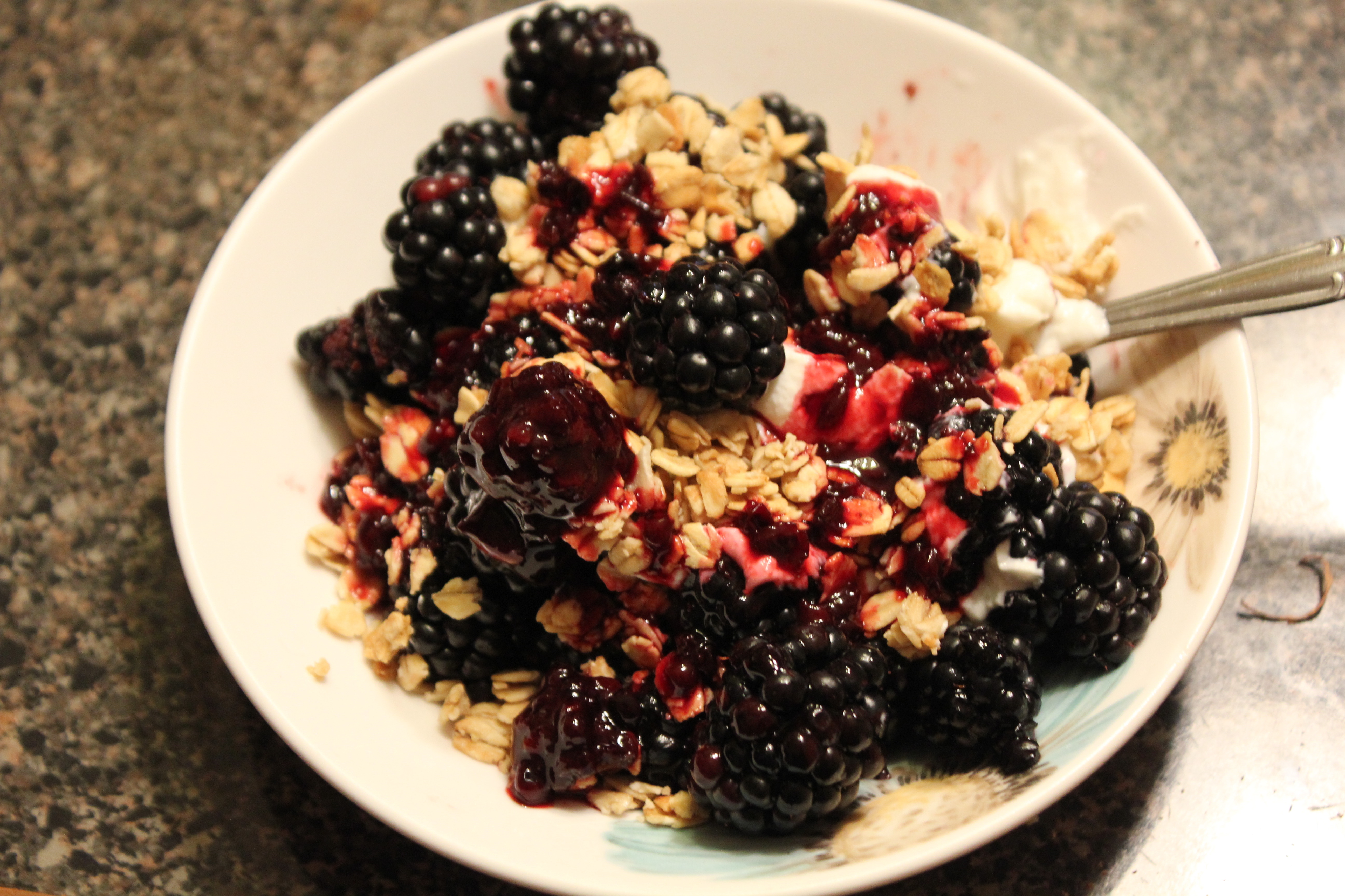 Monday evening we sorted through our share, washed it and put it in the fridge. Some of the berries we froze in ziploc bags and added to the stack of frozen fruit for the upcoming autumn and winter months. During the week, the blackberries and fruit are out in a bowl in our kitchen, which encourages us to eat them every time we see them. I will eat them for breakfast with greek yogurt, walnuts and granola. Whatever was left at the end of the week that we had not eaten or frozen, I made into a super easy blackberry jam. You just boil the berries with the juice of a lemon and some brown sugar until it turns into it starts to liquify and bubble, ladle it into a glass jar you have sterilized with some boiling water, and voila, you have a jar of jam that keeps for a while. It is delicious over greek yogurt, ice cream, or just with toast for breakfast.