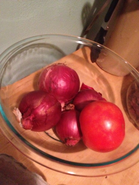 Due to the concerns of the hurricane we wanted to get through a lot of the stuff that had to go into the refrigerator. Being from New Orleans, I know how to survive weather like this. We started by making a simple salad wit the lettuce, tomatoes and onions and put some dressing on it. Simple, but when your ingredients are that fresh it doesn’t matter.