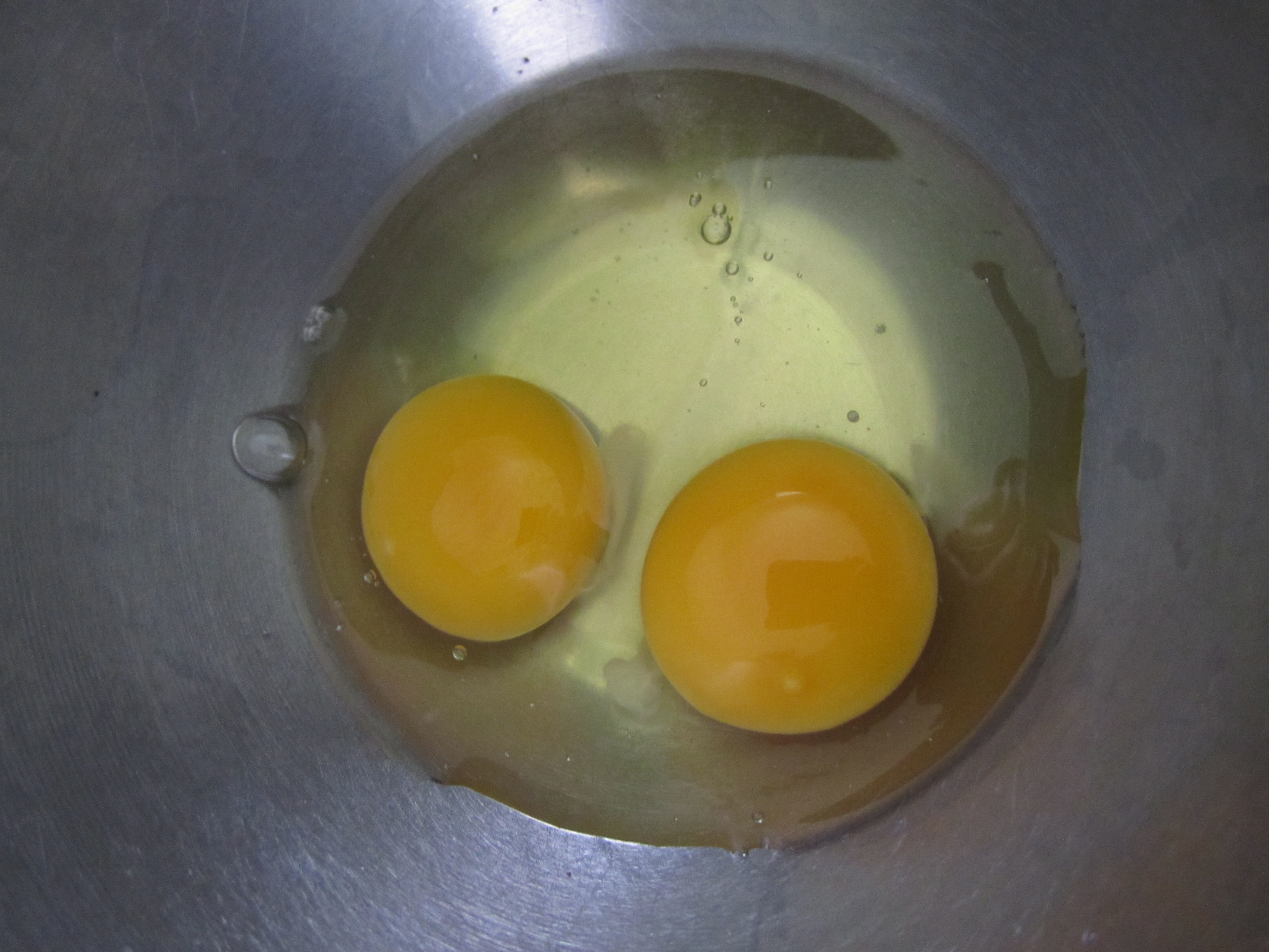 By Sunday we were finally out of our regular eggs. My husband made pancakes and I took a picture of the Feather Ridge eggs in the bowl. The yolks seem slightly oranger than our other eggs. I wanted to do a side by side picture for comparison, but forgot to tell my husband so he would save one of the old eggs. Oh well. He also cooks a lot more eggs than I do so I asked him if he thought they seemed different in any other way. He says the yolks are firmer. Is that a good thing? I guess it might be if you like to cook sunny-side up or over-easy eggs, which he does. I can’t say I thought the pancakes tasted any different, but I’ll be looking forward to sampling the eggs on their own.