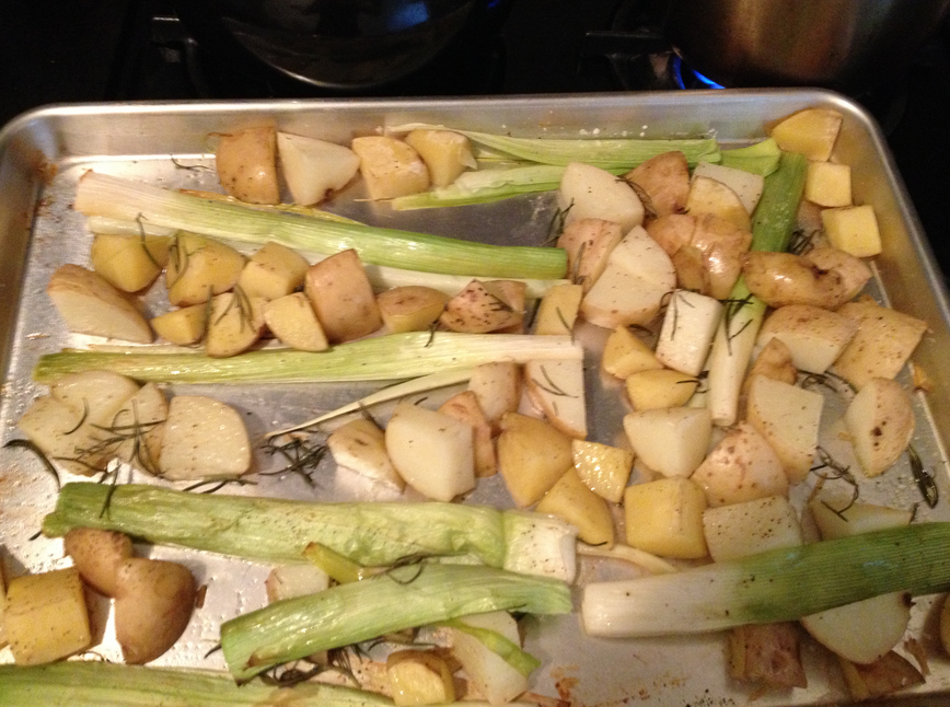 I started out wanting to make Anthony Bourdain’s vichiyosse. Then I took a realistic look at my postage-stamp sized blender and kitchen and decided to adapt this recipe from Food and Wine instead.