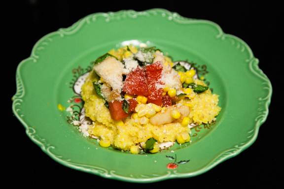 Mix these ingredients with some olive oil, salt and pepper (onions and mozzarella would probably add to the deliciousness). Refrigerate for a little bit and pour onto polenta. This is a really delicious salad, especially with the fresh CSA produce