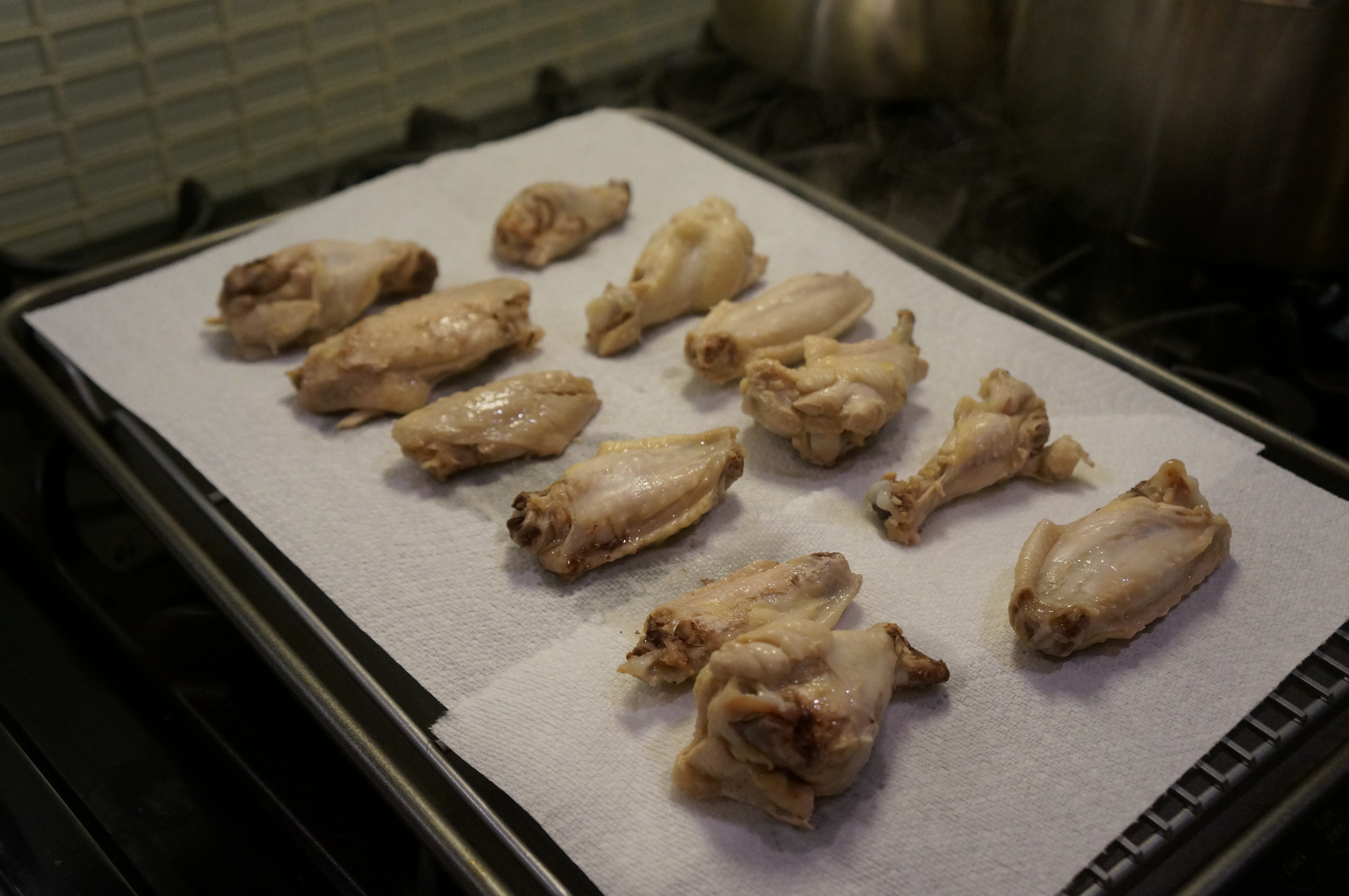 Those of you who had A week this week might have been excited for the chicken wings! We love wings but had never made them on our own before. We found two recipes but basically followed this one from Alton Brown: Buffalo Wings!
