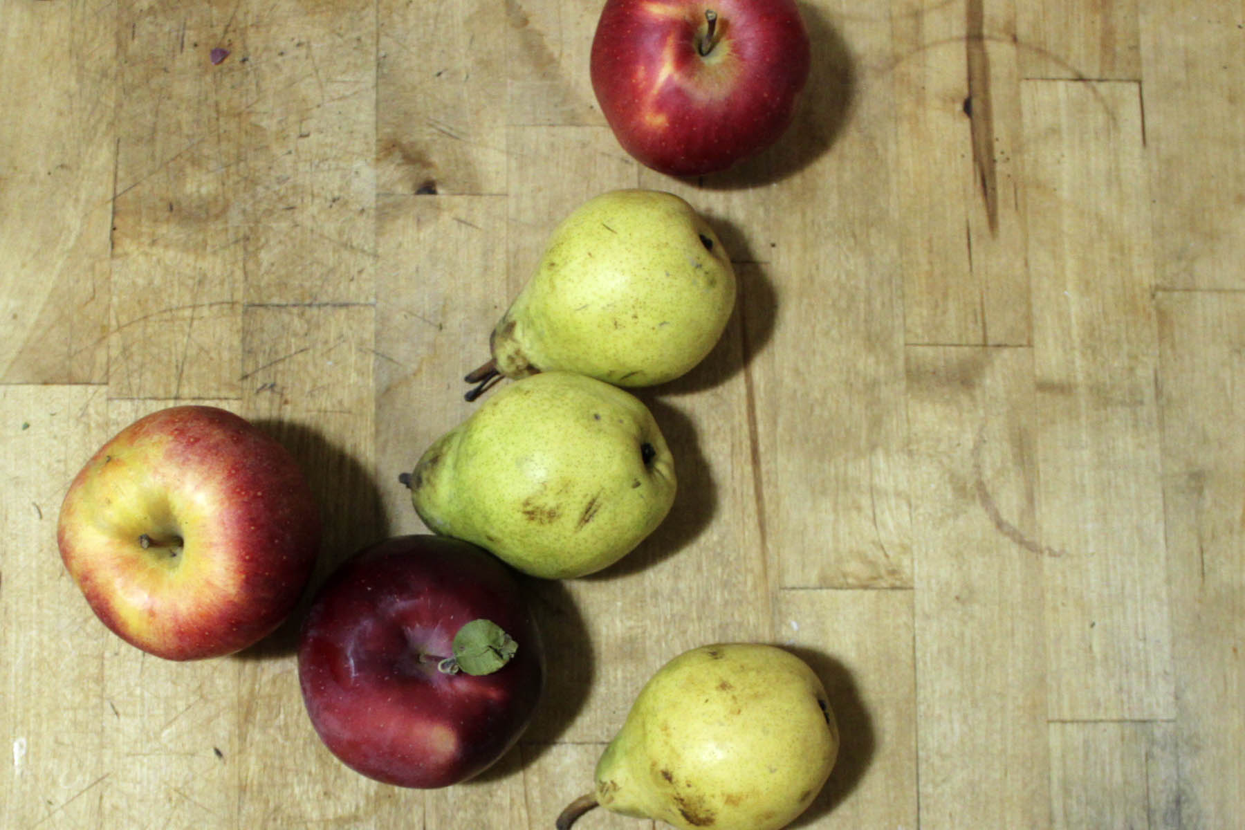 - 3 pounds* of whatever apples and pears peeled, cored and cut into medium chunks